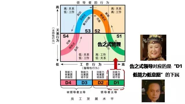 這就是「告之型主管風格」:高工作行為——直接下達命令,低關係行為——以雷霆手段做到高效率,完全不考慮下屬的感受。