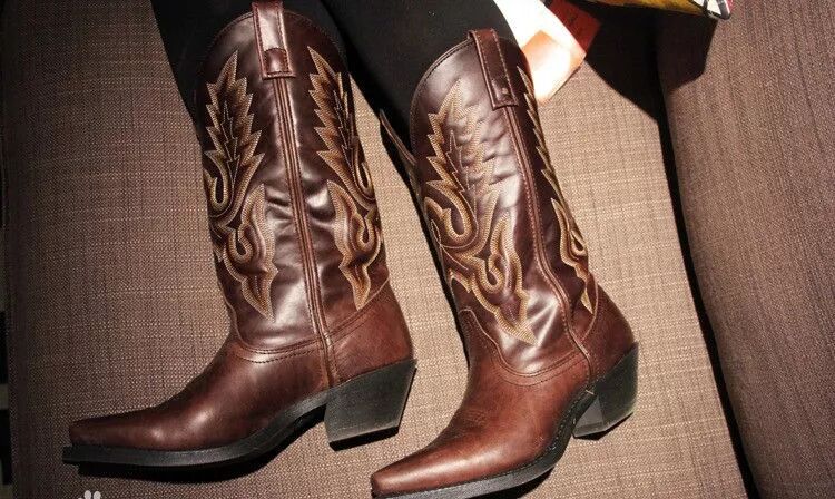 最正統的西部靴就長下面這樣,靴口前後有三角形的缺口,靴筒比較寬鬆,到小腿肚的高度,有的靴筒上會有刺繡裝飾。