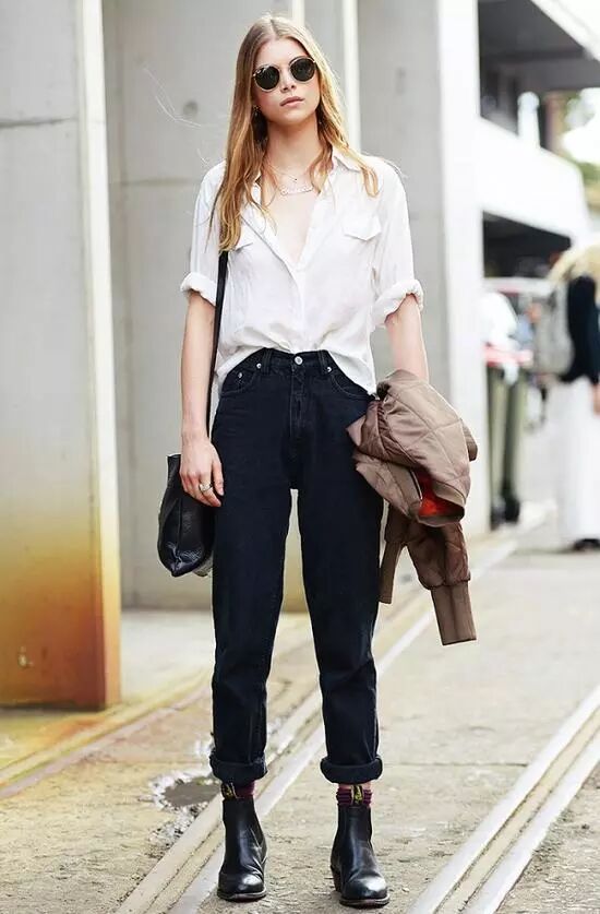 或者用直筒褲來搭配襪靴,又修飾腿型,又增加了切爾西靴的帥氣。