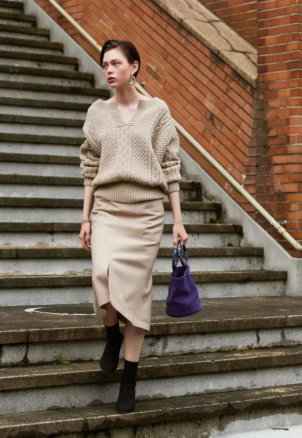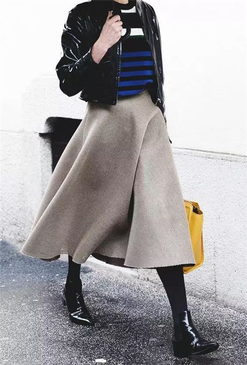 只要搭配的時候,用長裙來搭配襪靴,這樣的做法就完全OK啦!照樣可以穿出纖細感!