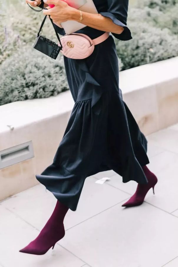 襪靴這一兩年持續大熱,從鞋面到鞋筒,都是用針織或絲絨製作,非常柔軟,因而十分貼合腳踝部分,讓小腿線條更加修長。