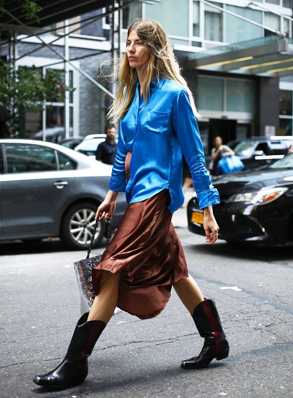 牛仔靴有兩個優點,一個是顯小腿瘦,因為靴筒寬鬆;另外一個就是很酷。