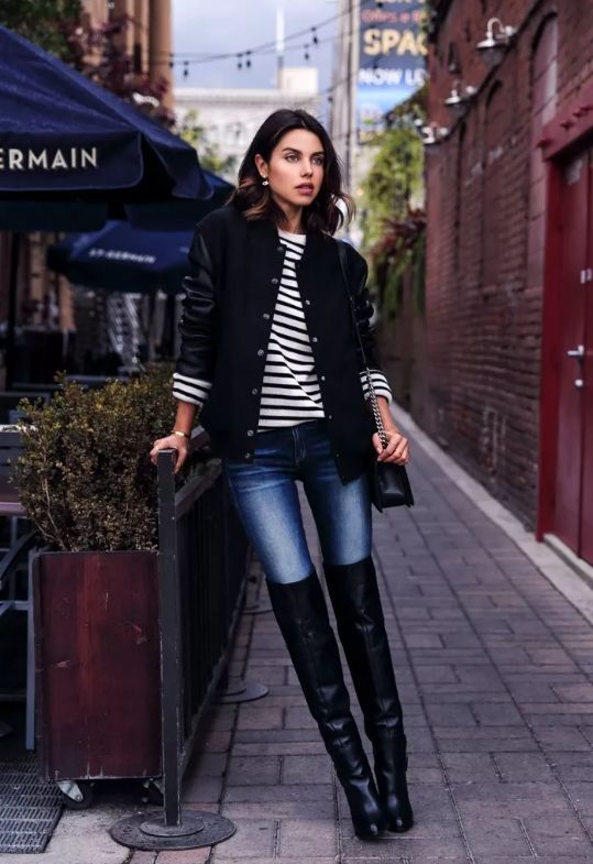 時髦星人很愛的牛仔褲+黑色過膝長靴最能穿出帥氣幹練的時髦型范,不經意之間就秀盡迷人大長腿。