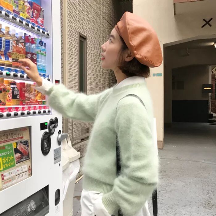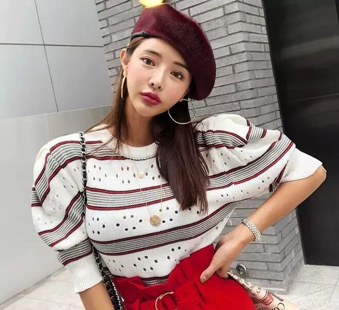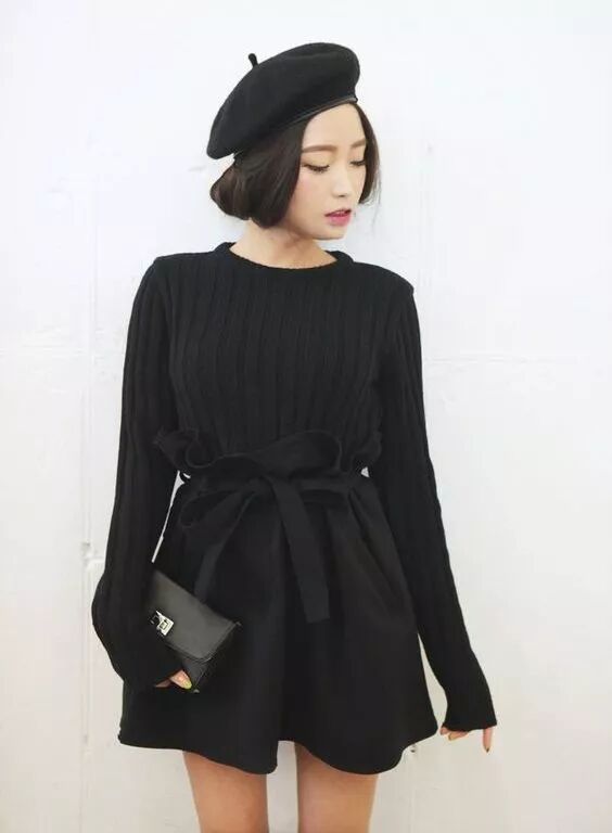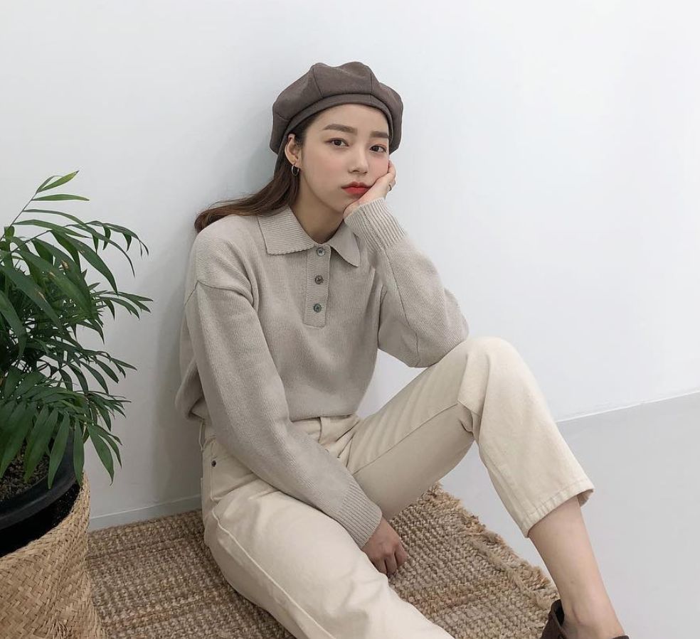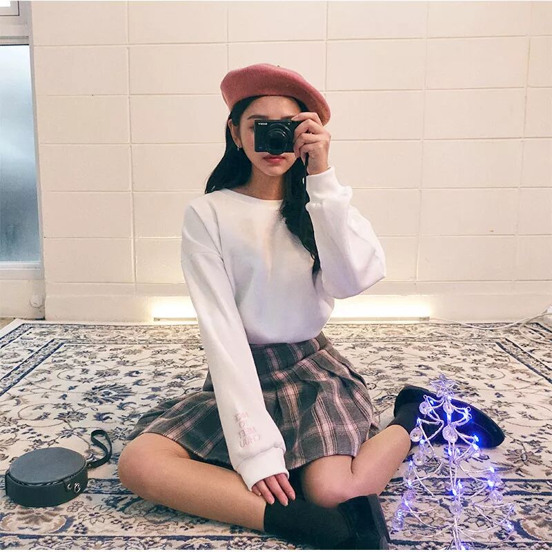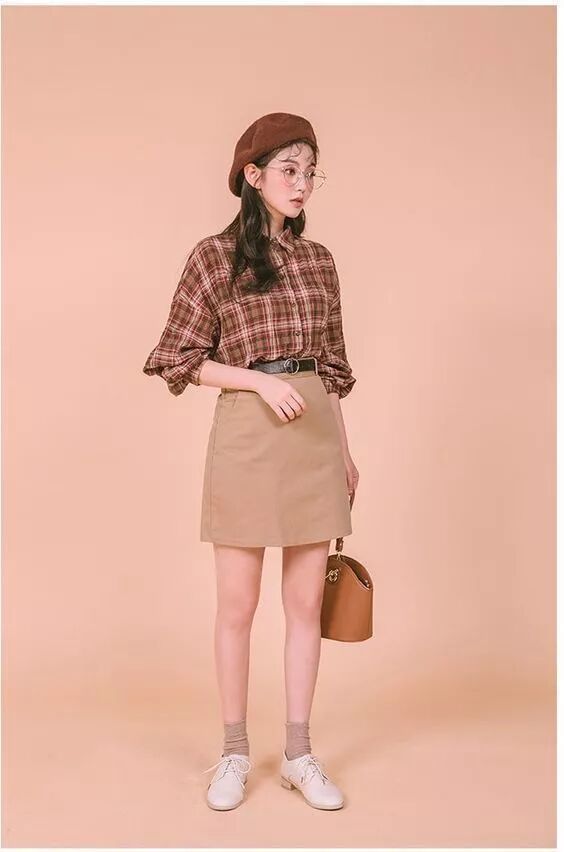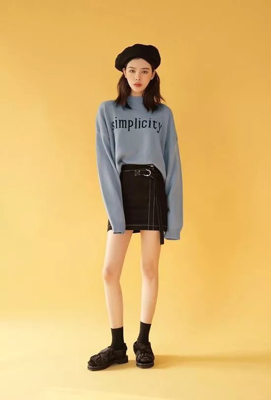 長袖襯衫/針織衫➕短裙➕貝雷帽/八角帽
