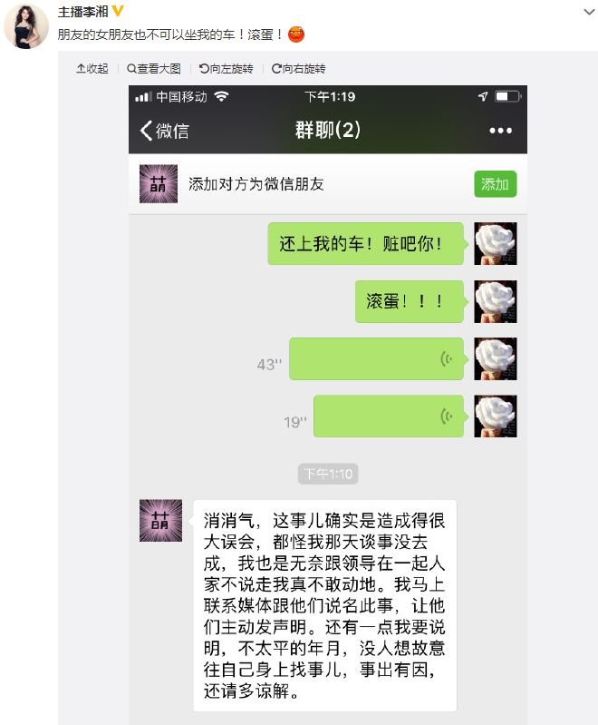 緊接著李湘發微博回應: