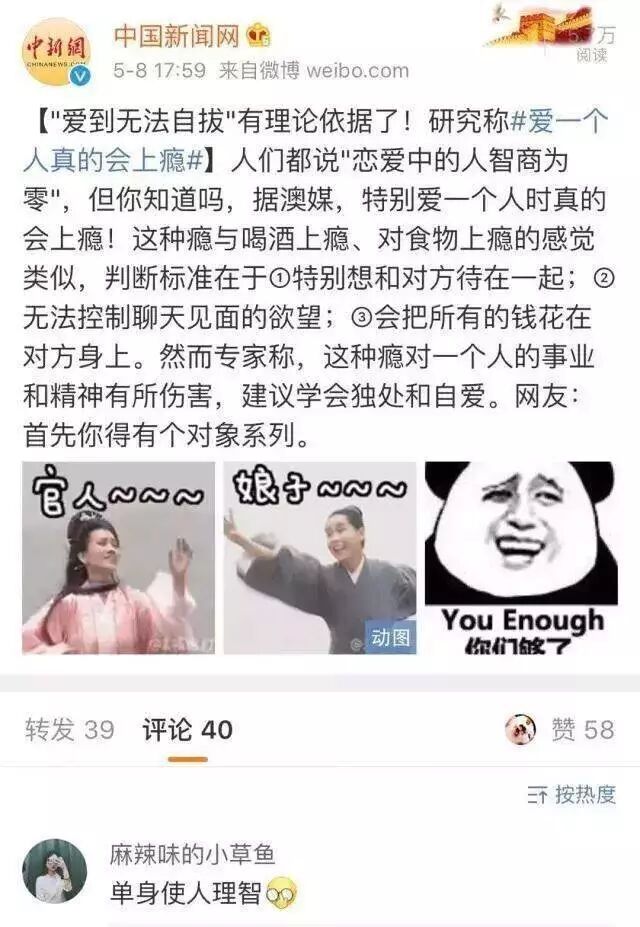 在某博上看到一條很有趣的話,愛一個人真的會上癮嗎?