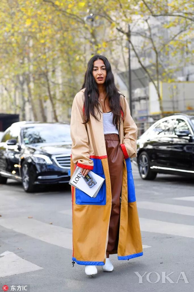 如果你實在不喜歡大面積的堆疊,這種拼接的款式,新奇特別,給經典風衣多了一絲設計感,讓皮革風衣少了點厚重。