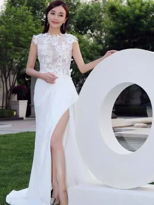 走紅毯穿了一條白色魚尾裙,讓她的身材展現的淋漓盡致,側面看真是前凸後翹的,魚尾的裙擺,真像是一條美人魚。