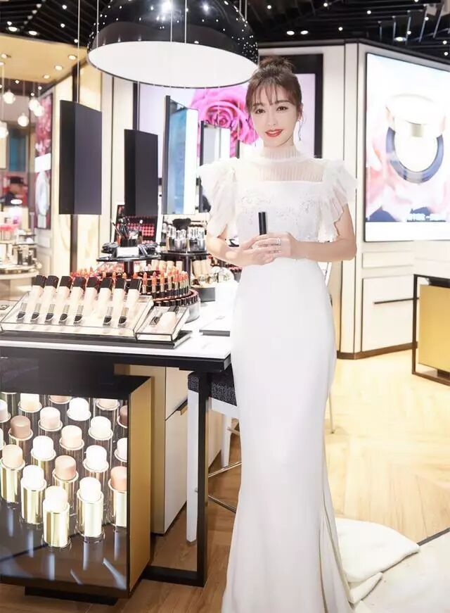 側開叉的禮裙還是蠻性感的,再加上胸前的薄紗設計,鎖骨隱約展現出來,讓她多了一種朦朧的性感。