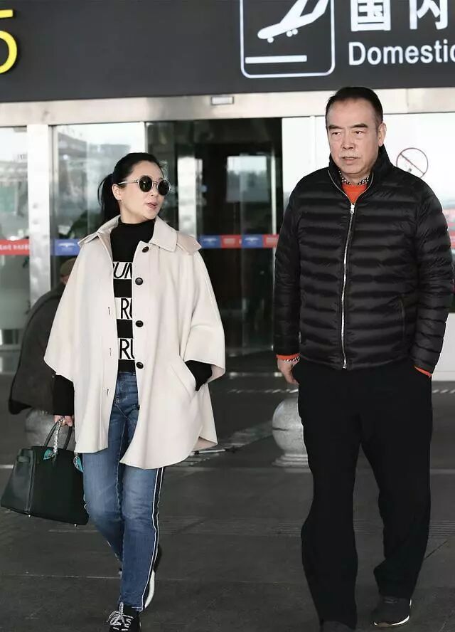 在機場的打扮也是蠻隨性的,梳著高馬尾,戴著黑色墨鏡,米色的長外套內搭黑色毛衣,蠻接地氣的,下面穿一條側條紋牛仔褲,很休閒時尚呢。