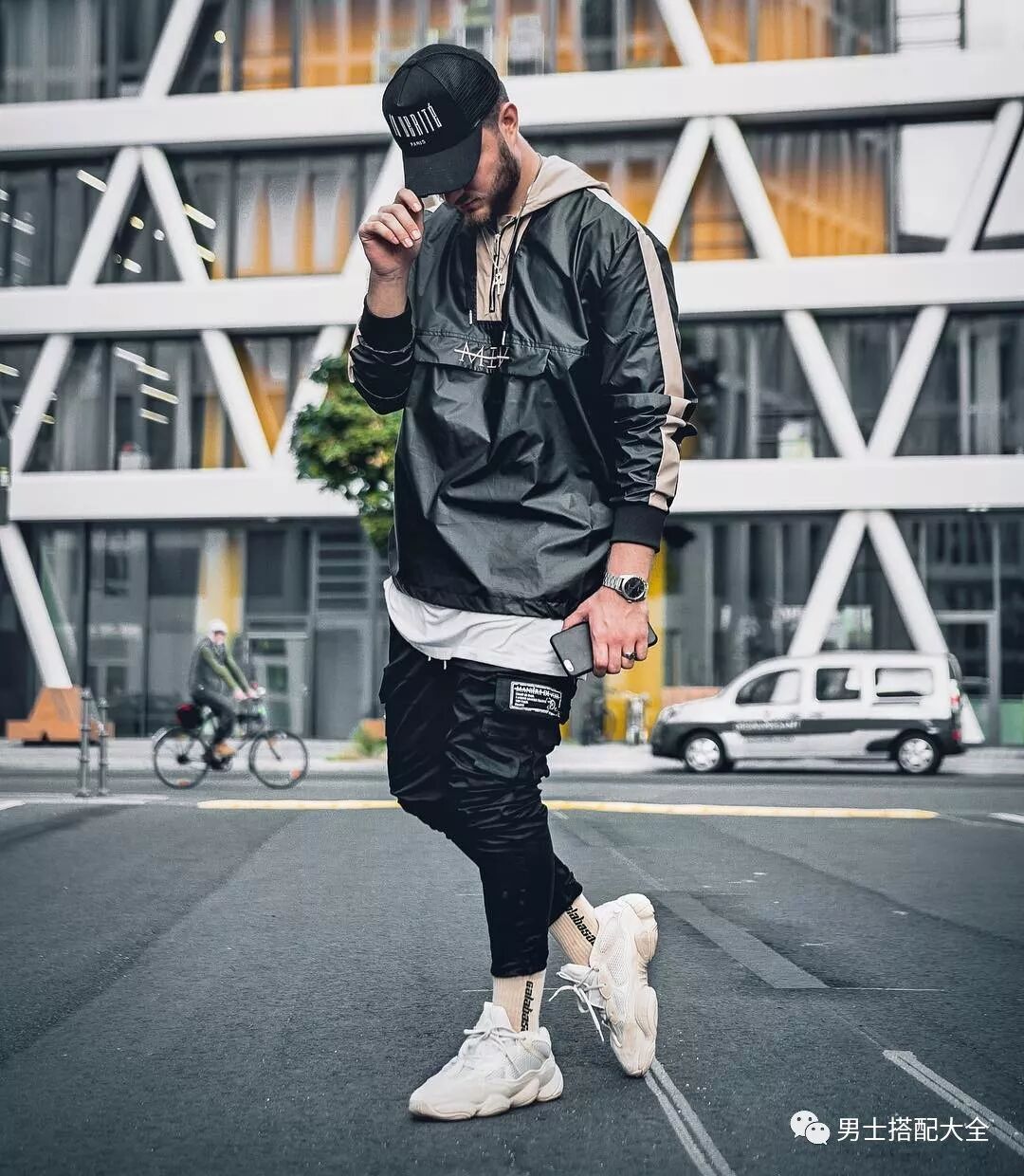 若不想讓整體看起來真的太像運動服,搭配君有個提示:就是不要穿整套的運動品牌,可以上身為大 Logo 或是品牌標識,下身混搭丹寧破褲或是毛料寬褲;或是下身為運動褲,上身混搭大衣或是丹寧外套等風格衝突的單品。