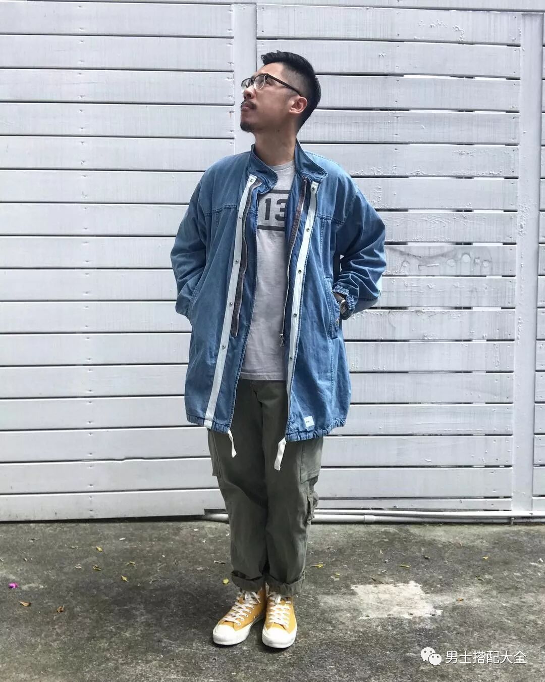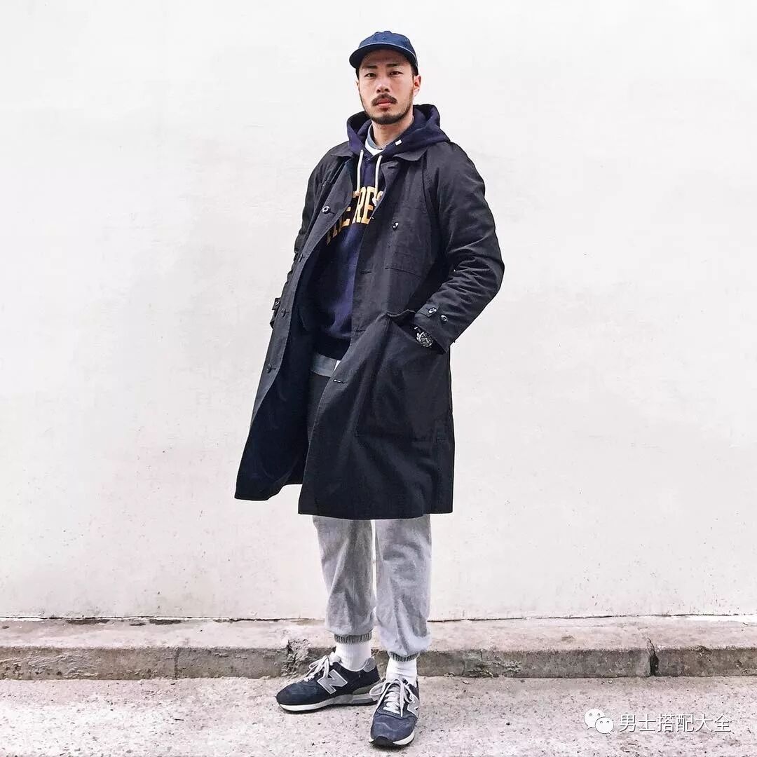 下身為運動褲,上身混搭大衣或是丹寧外套等風格衝突的單品