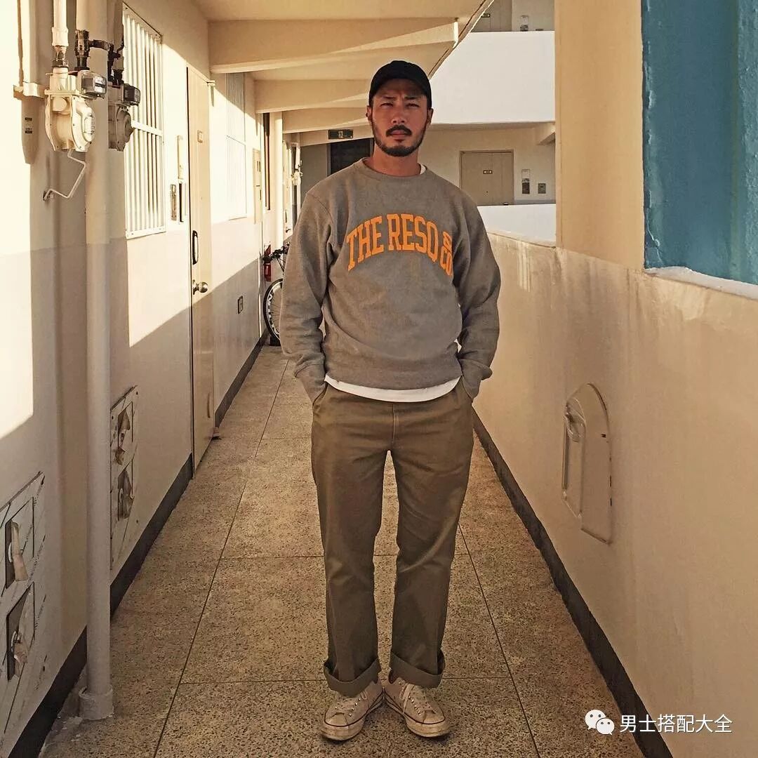 上身為大 Logo 或是品牌標識,下身混搭丹寧破褲或是毛料寬褲。