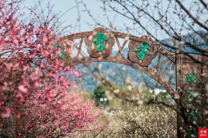 鄧尉山,離蘇州市區約30公里,位於蘇州的西南的光福鎮,因東漢太尉鄧尉隱居此山而得名。據《光福志》記載:「鄧尉山里植梅為業者,十中有七」。