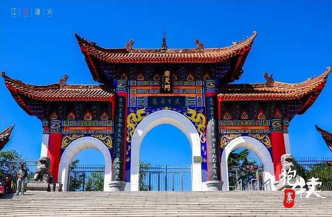 山上有全國最大山頂門坊–南天門,高13.9米,寬23米。由三個拱門合為一體,看起來氣勢磅礴,在全國山頂門庭建築中極為少見。