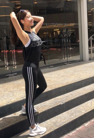 擁有美好身段的伍樂怡熱愛運動,穿著運動背心和貼身長褲的她健康美十足,而貼身長褲更是把驕人的身材展現得表露無遺。