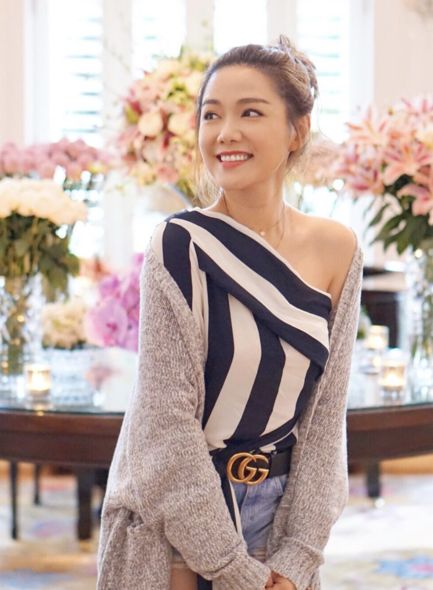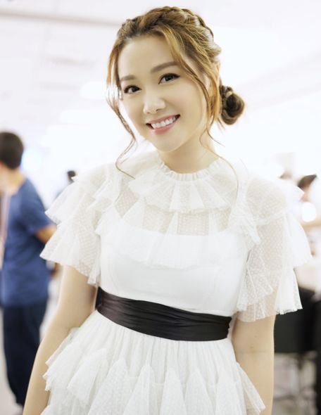無論是私服或出席活動,湯洛雯也喜愛綁起辮子,造型百變。輕紗是打造高雅氣質的好物,加上一條簡約的黑色束腰帶,腰部曲線更加突出。