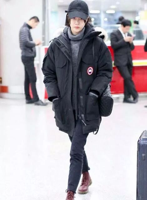 黑色的羽絨服看起來特別的保暖了,搭配了黑色的牛仔褲穿起來非常的顯瘦,特別的纖細的小腿就凸顯了出來,很好看