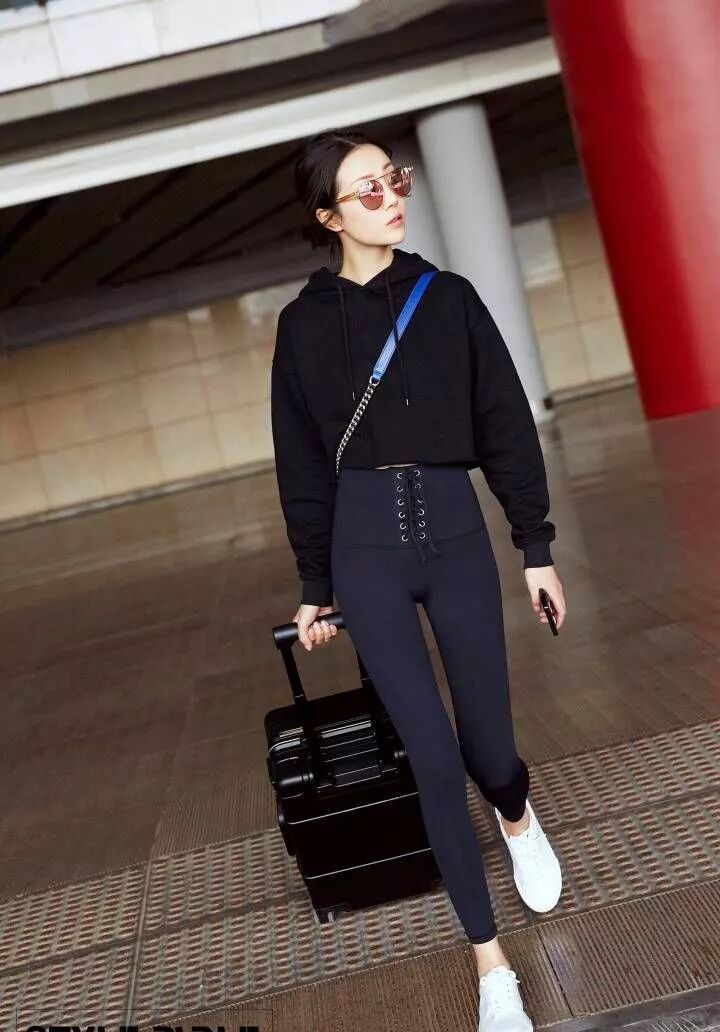 黑色的衛衣看起來特別的舒服,搭配了黑色的高腰的褲子,本來挺醜的一條褲子,李溪芮穿著還挺好看的呢,很有個性