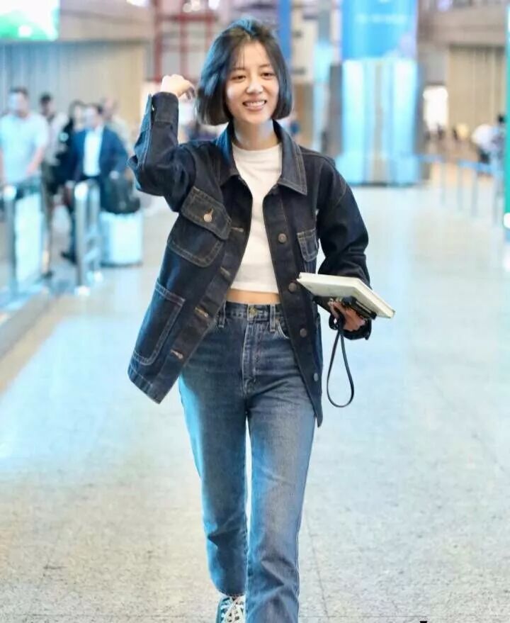 黑色的外套內搭了一件白色的衣服,經典的黑白配看起來特別的適合,下半身搭配了牛仔褲,整體都比較的青春了。