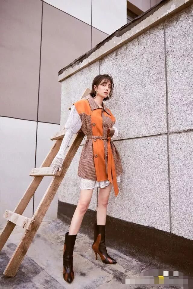 搭配靴子看起來特別的搭配了,而且裙子還有一個打結的設計,會讓衣服看起來有些俏皮了,顯得更加的好看了,這個腿都要和唐嫣的有的一拼了