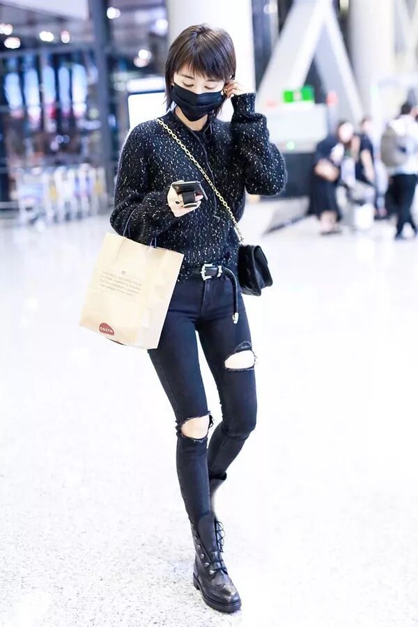 王子文的點子紗毛衣,搭配黑色破洞小腳褲,這樣的穿搭很適合小個子,超級顯高。
