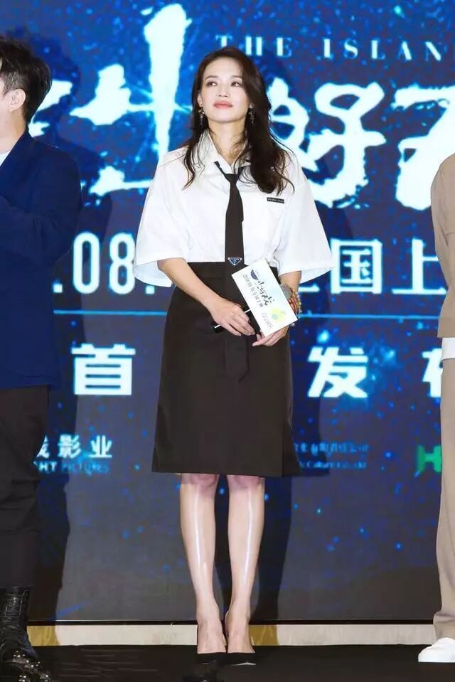 舒淇這一身打扮穿的很經典,不過她這氣質,愣是穿成了校服的感覺呢,難怪有人說她24歲也有人相信呢!oversize的短袖白襯衫,前面松松地打了個領帶,特有架式兒。