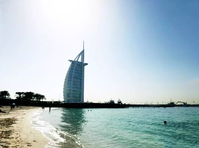 15:00左右到達了朱美拉海灘(Jumeirah Beach),這里是欣賞帆船酒店(Burj Al Arab)的絕佳地點,如果傍晚前往的話,還可以看到壯觀的夕陽。