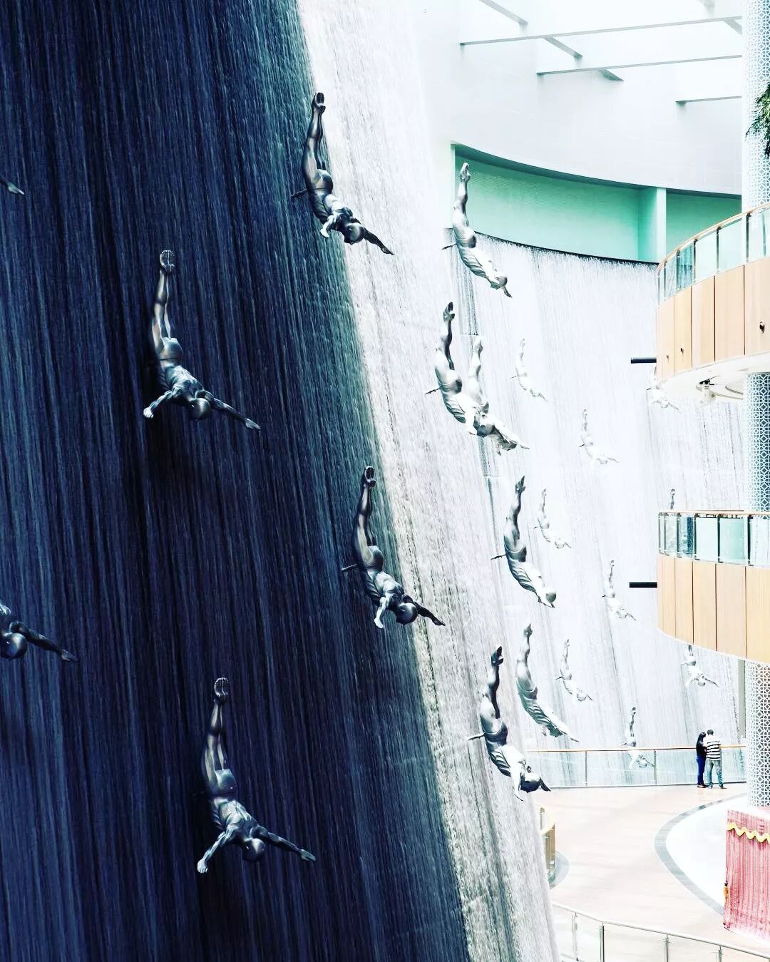 「還有飛人瀑布也是打卡的地方。」這個室內瀑布足足有3層樓高。