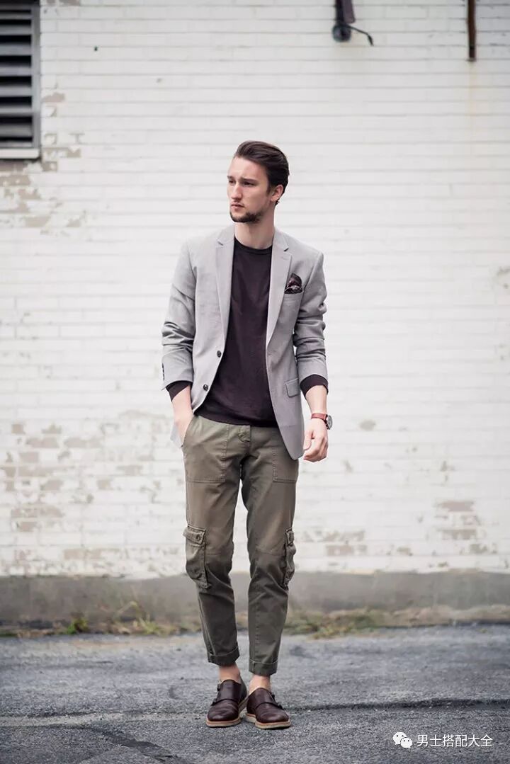 西裝外套+T恤打底,再搭配一條牛仔褲或者休閒褲,是一點不正統。在鞋子上選擇搭配運動鞋或者樂福、孟克,都是極其休閒的。這樣的穿著出門,無論是約會還是工作,都不會突兀。
