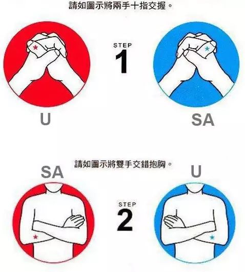 B、左手臂在上──「SA」