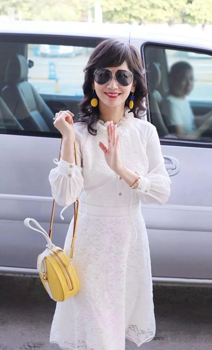 內搭蕾絲的白色上衣,看起來更加減齡,領口處理,洋氣十足,宛如小女孩一樣可愛,同時外搭的裙子,也十分大氣,趙雅芝,真會打扮自己。