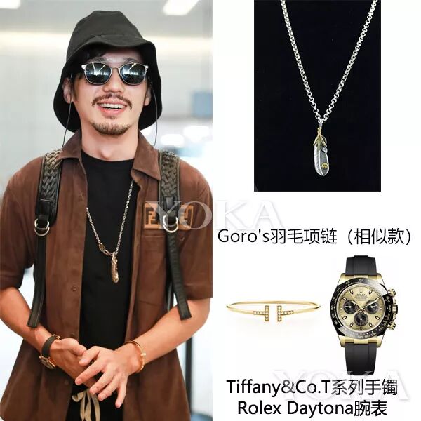 感覺白宇哥哥很喜歡戴配飾,經常腕表、項鏈、手鐲樣樣具備,而且日常標配都是幾十萬起步的。之前現身機場,戴過人氣很高的來自日本的著名銀飾品牌Goro’s羽毛項鏈、蒂芙尼T系列手鐲以及價值25萬+的勞力士迪拿通腕表,這款腕表是勞力士在2017年巴塞爾表展上推出的新款,白宇戴的是18ct黃金款。