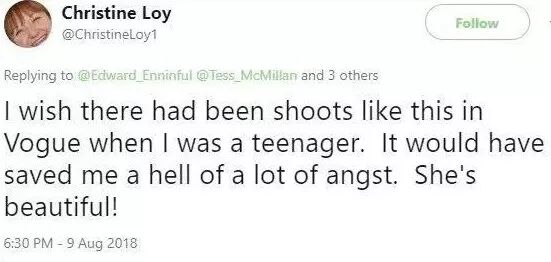 「真希望我十幾歲的時候Vogue就能拍這樣的大片,這樣當時的我能少經歷多少焦慮啊!她真美!」