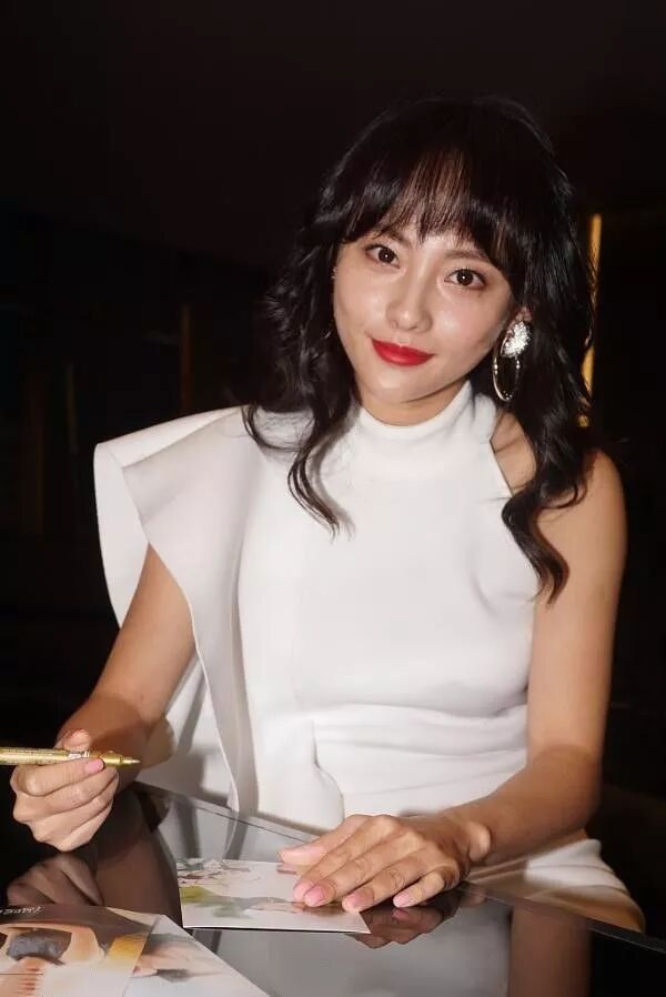 其實她的臉部沒有太大的變化, 空氣瀏海讓她看著更加減齡了,微微捲髮,多了幾絲女性的嫵媚美感,一抹紅唇讓她的起色看著更好了。