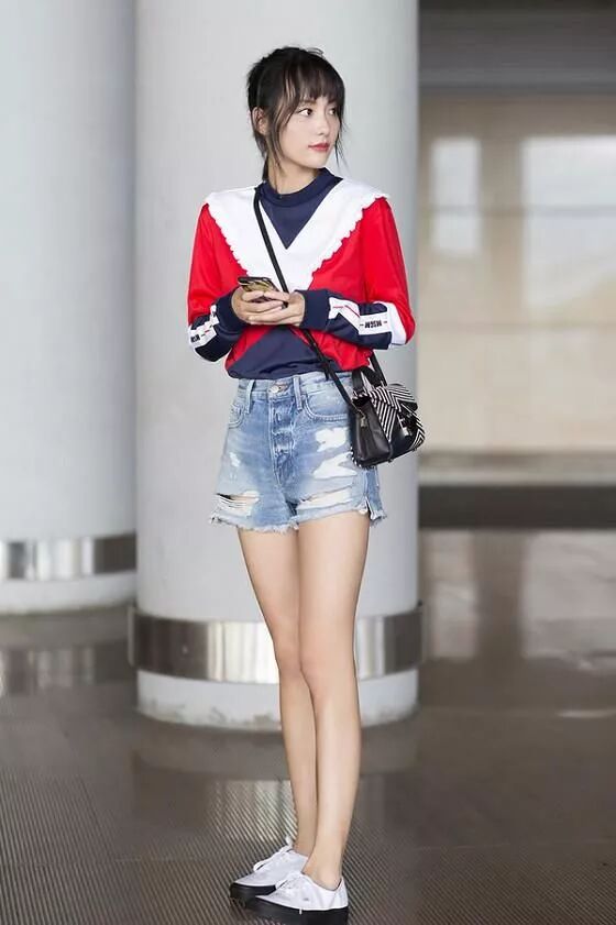 看她之前的私服打扮,真的是逼死人的節奏啊,看她這筷子腿,完全都不用P塗了,足夠纖細了。