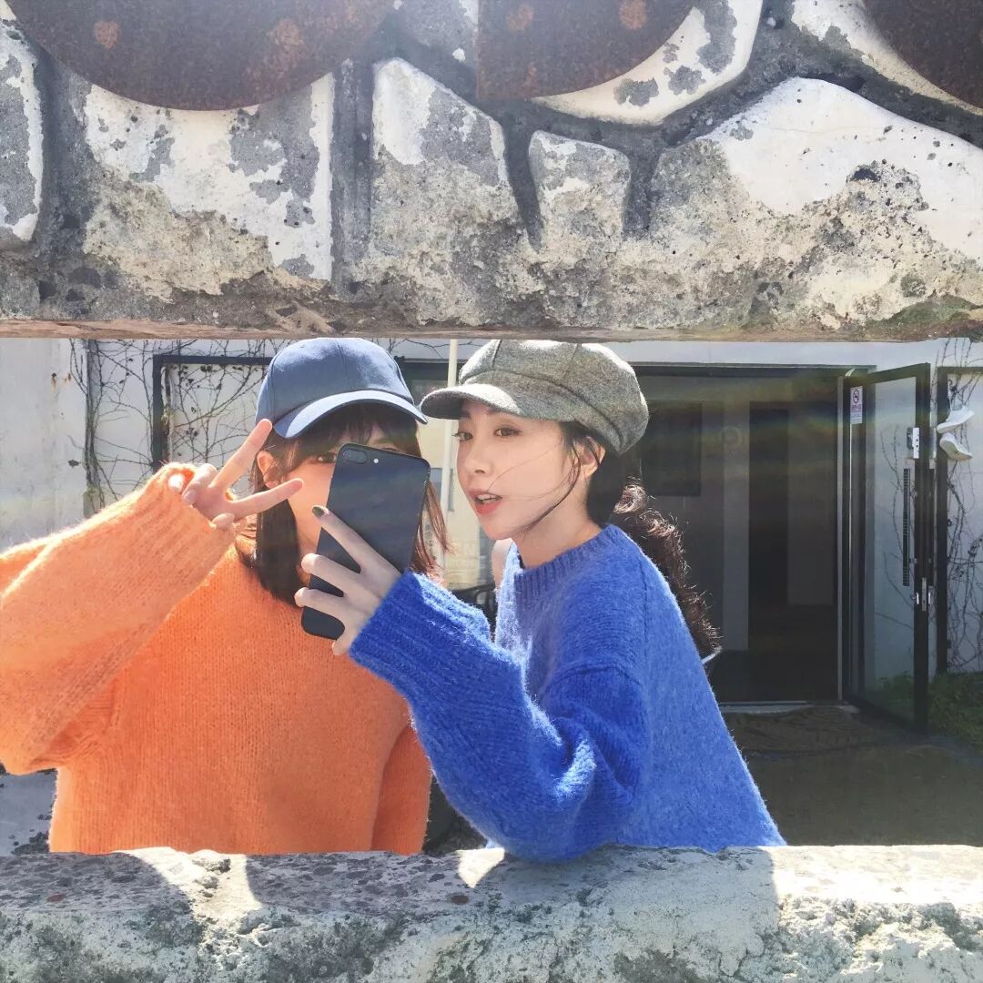 這款毛衣用的紗線是新品定紡的羊毛絨 這種毛絨紗線的手感特別好 整體紗線偏粗一些 像是手工棒針織出來的那種
