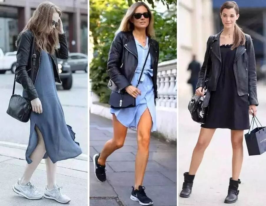 連衣裙+皮夾克,剛柔並濟,實力演繹帥氣女騎士~