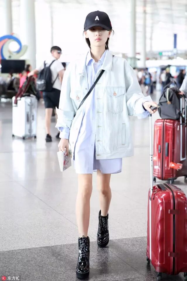 不過嬌小的仙女最好學學景甜搭配短款連衣裙,讓纖細的雙腿露出來,才不容易顯矮