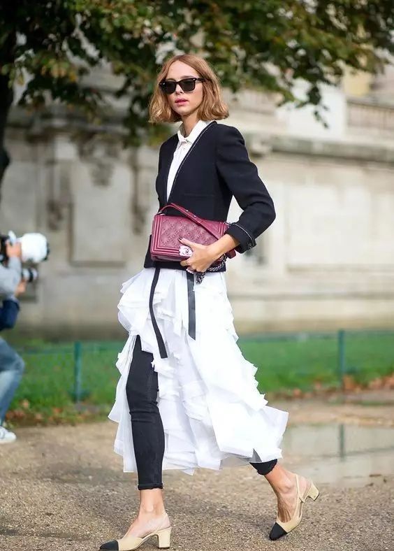 本來毫無亮點的西裝套裝內搭一件襯衫裙,一下子就帥氣攻氣氣場十足了哇!