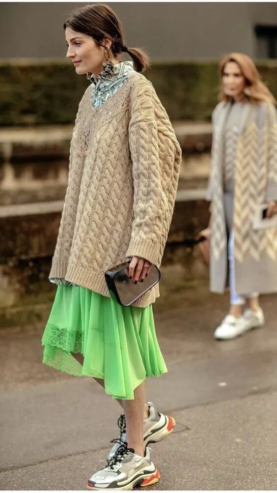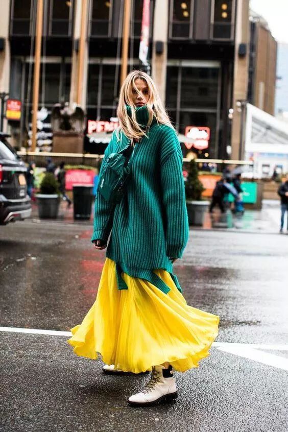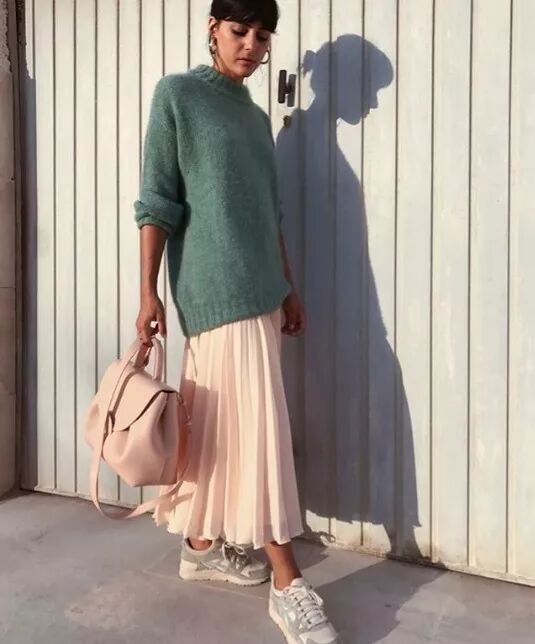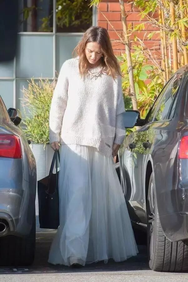 毛衣套紗裙可能是我們最先會想到的組合,溫柔感十足