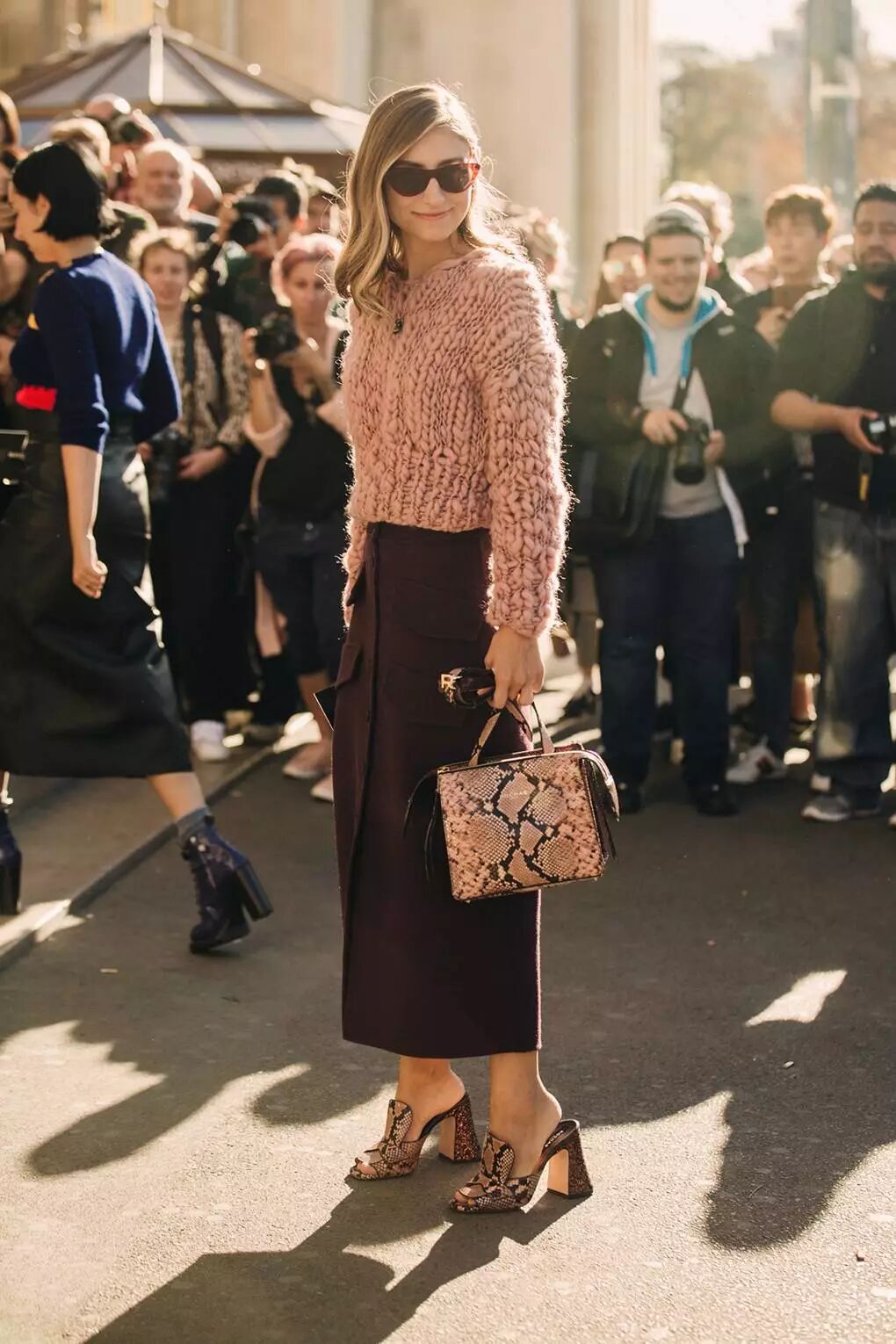 百褶裙文藝又浪漫,一直都是時髦精們的心頭好。而用它搭配大毛衣,亦能讓你的造型看起來更加輕盈飄逸,在寡淡的季節里照樣美成一道街景。