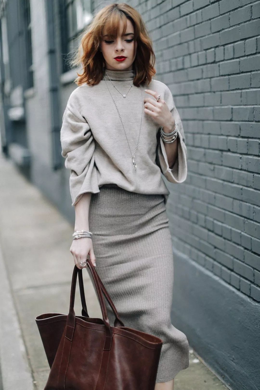 大一號的oversized毛衣與修身包臀的鉛筆裙,一直都是秋冬季里出鏡率超高的的時髦CP,「上松下緊」的組合顯瘦效果一流,時髦又有女人味。