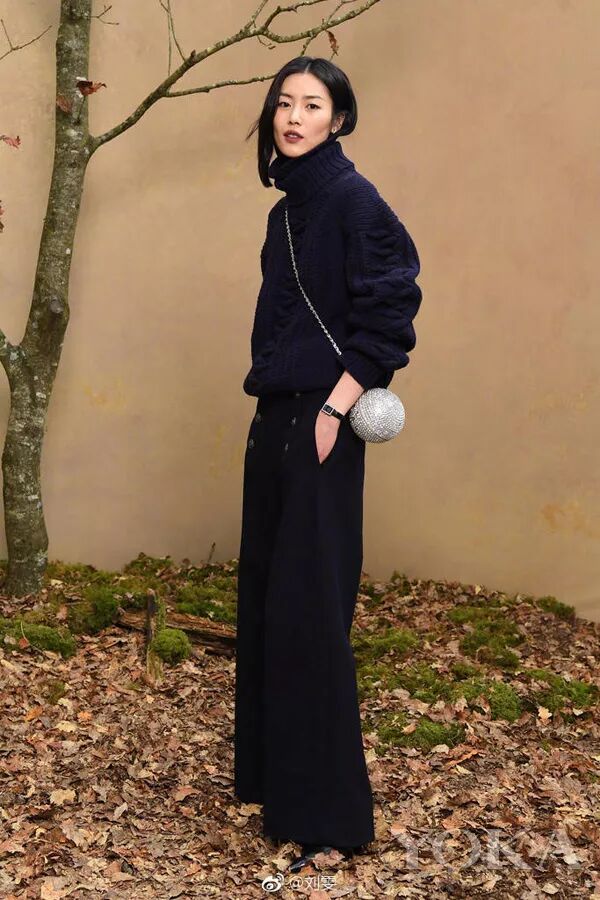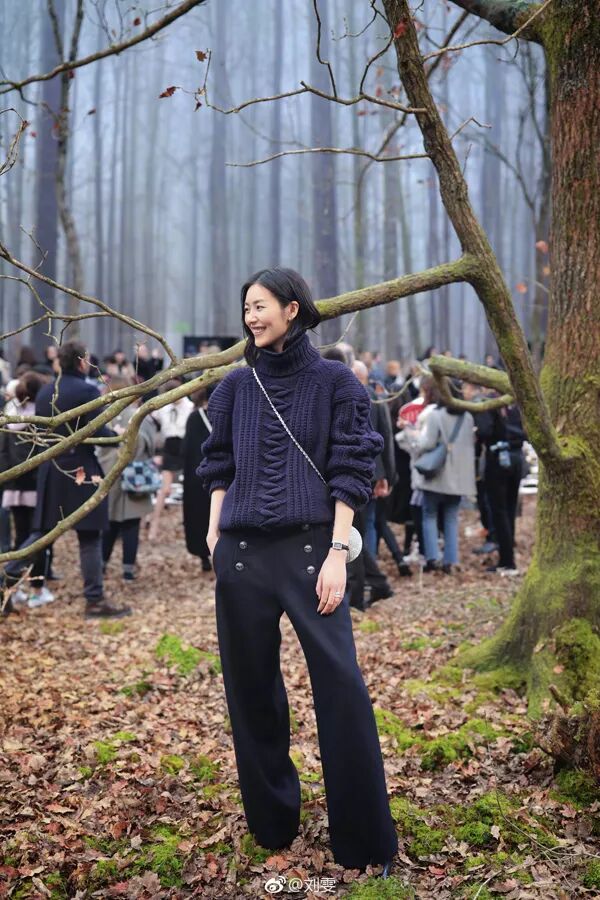 要說氣溫驟降的時候,抗寒能力一級的女明星們可能也都架不住了,這時候溫暖牌高領毛衣就變成了秋冬季節的保暖標配!劉雯的藏藍色毛衣搭配闊腿褲脫俗又優雅,Oversize的粗棒針款也不要太時髦!