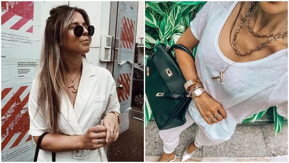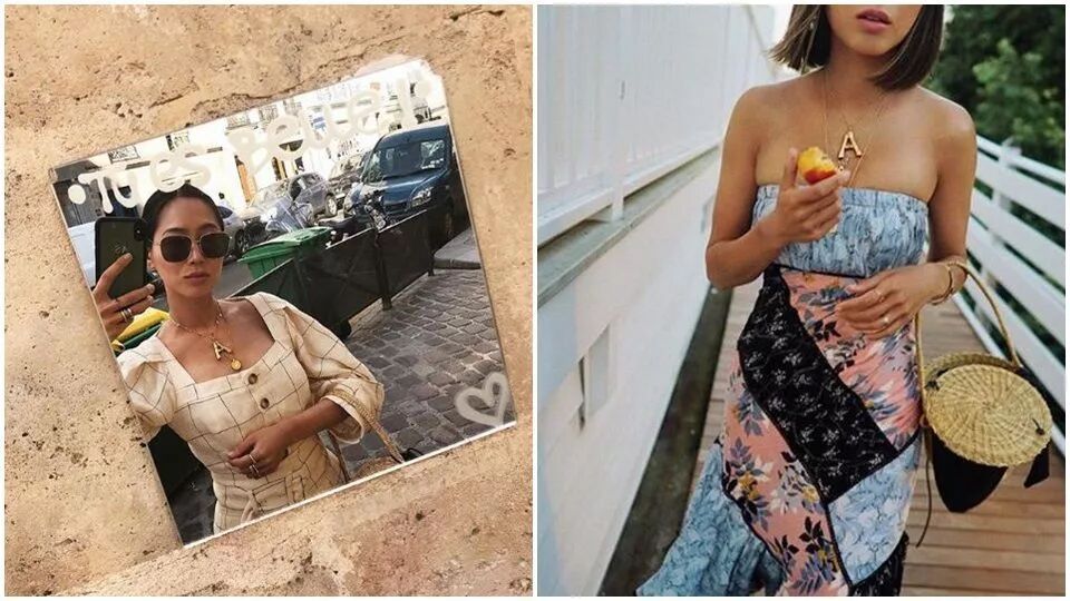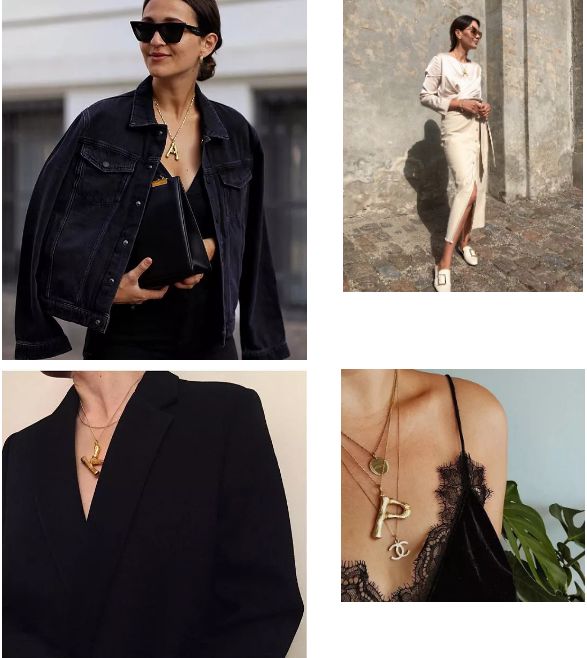 Aimee Song經常不離身的新寵就是這個遠遠就能看到的大字母。再搭上纖細長短不一的金項鏈,當個時髦土豪~