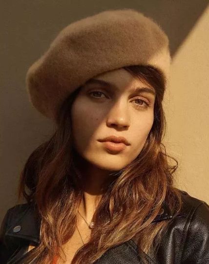 相比長髮,長度到下巴的短髮發梢恰好能增加下頜「重量」,平衡貝雷帽給頭頂帶來的厚重感,看起來更精致靈動。
