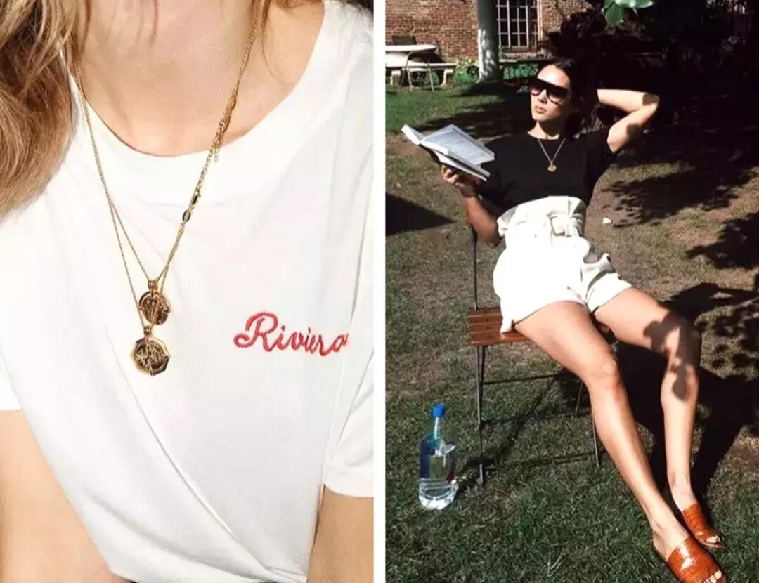 硬幣項鏈搭配簡約的T恤也非常好看的喲。