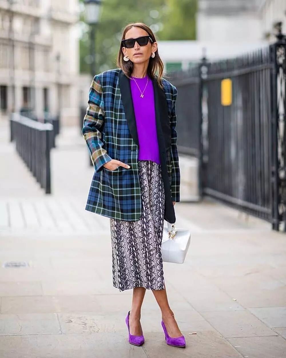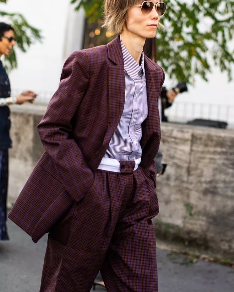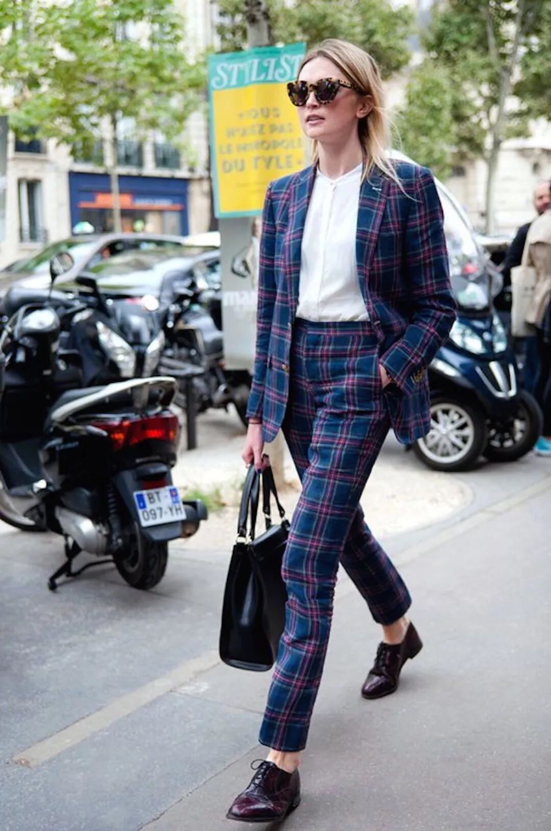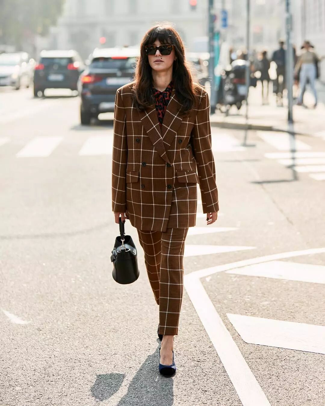 今年秋冬,各大品牌推出不少格紋西服套裝,如果害怕穿一整套格紋會顯老氣,那麼可以選擇咖啡色以外的亮色系,例如內斂的酒紅色或是紅藍相間格紋都是不錯的選擇,作為工作日穿搭也特別專業時尚。