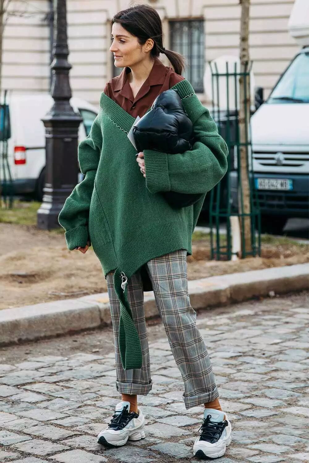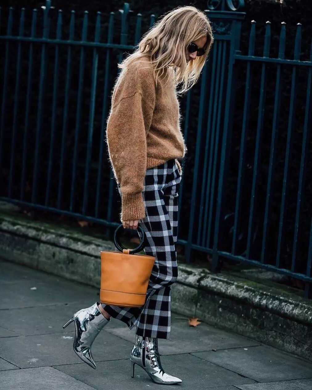 格紋長褲可說是百搭單品,但如果擔心直筒褲型會過於正經拘束,不妨挑選瀟灑的寬褲褲型,上身可以選擇搭合身的針織衫,或是 oversize 的慵懶毛衣,簡單即能打造時髦自信的氣場,一點都不擔心難搭配。