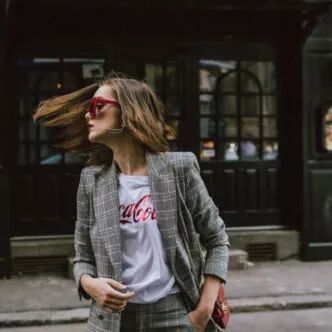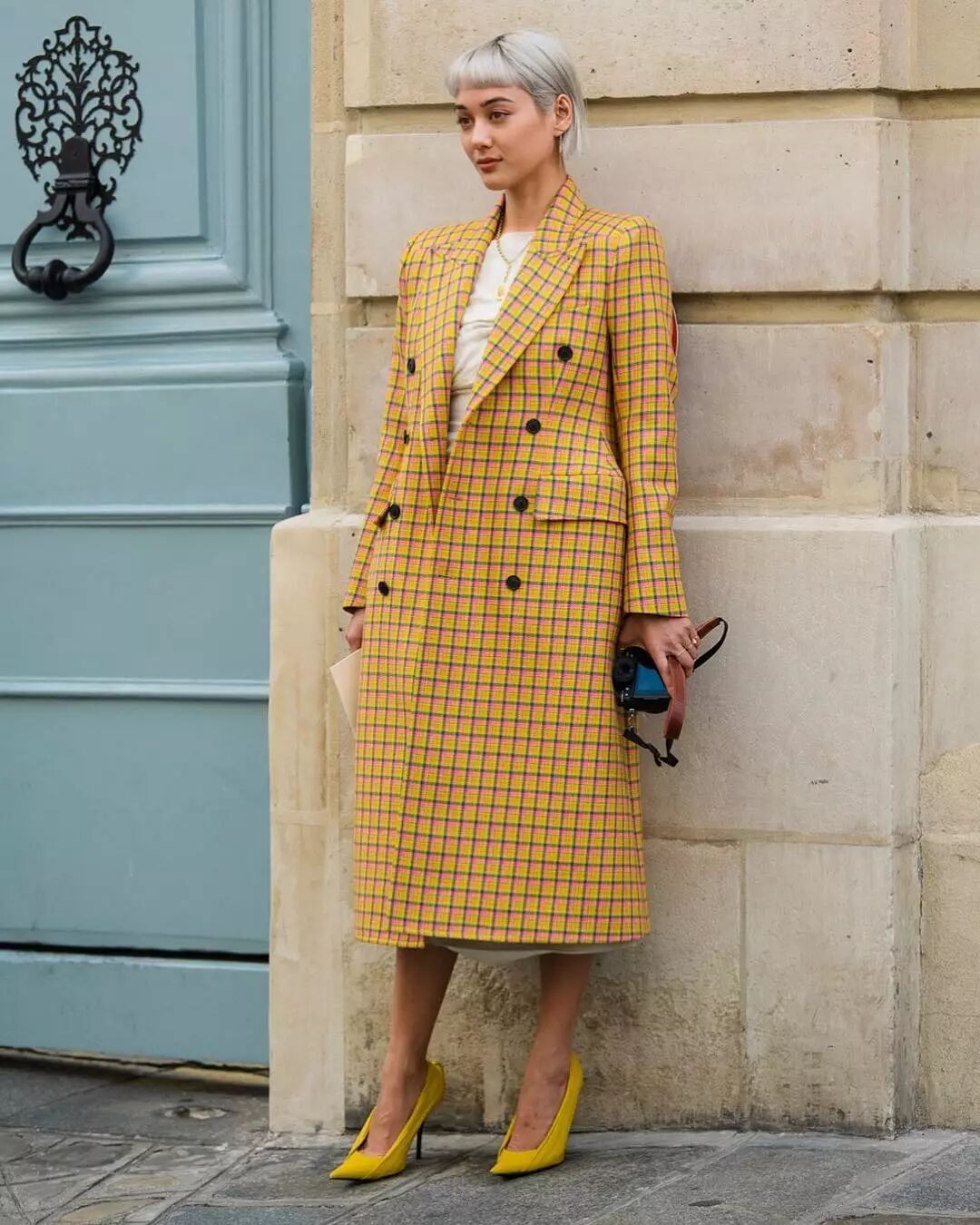 曾聽聞許多女生想嘗試格紋外套,但又擔心穿不好會很像「老伯」,其實從色調和格紋大小去挑選,就會減低風險,選擇亮色系和大格紋花色,即使不特別混搭飾品與搶眼的鞋履,依然可以穿出知性品味。